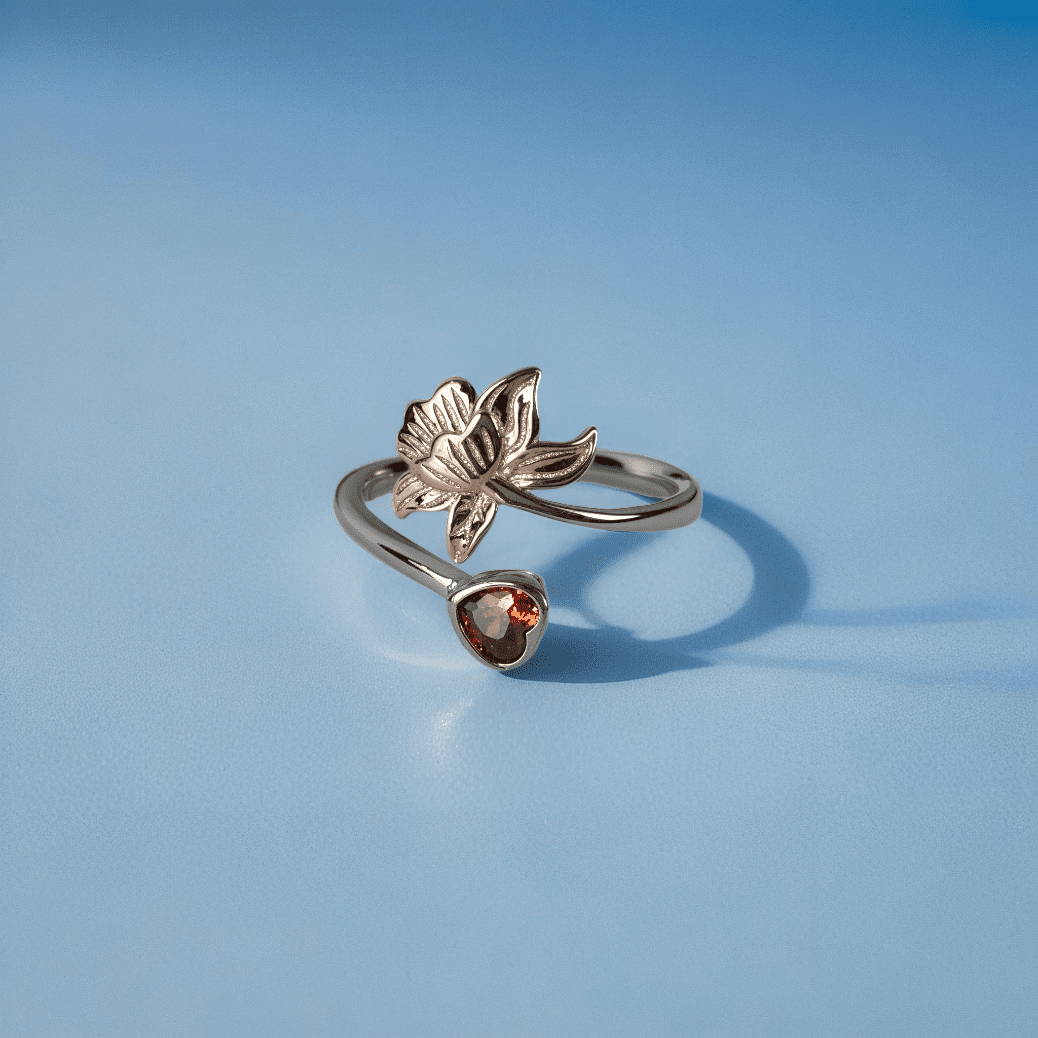 Embrace delicate beauty with Siltree's Silver Flower Heart Ring! π